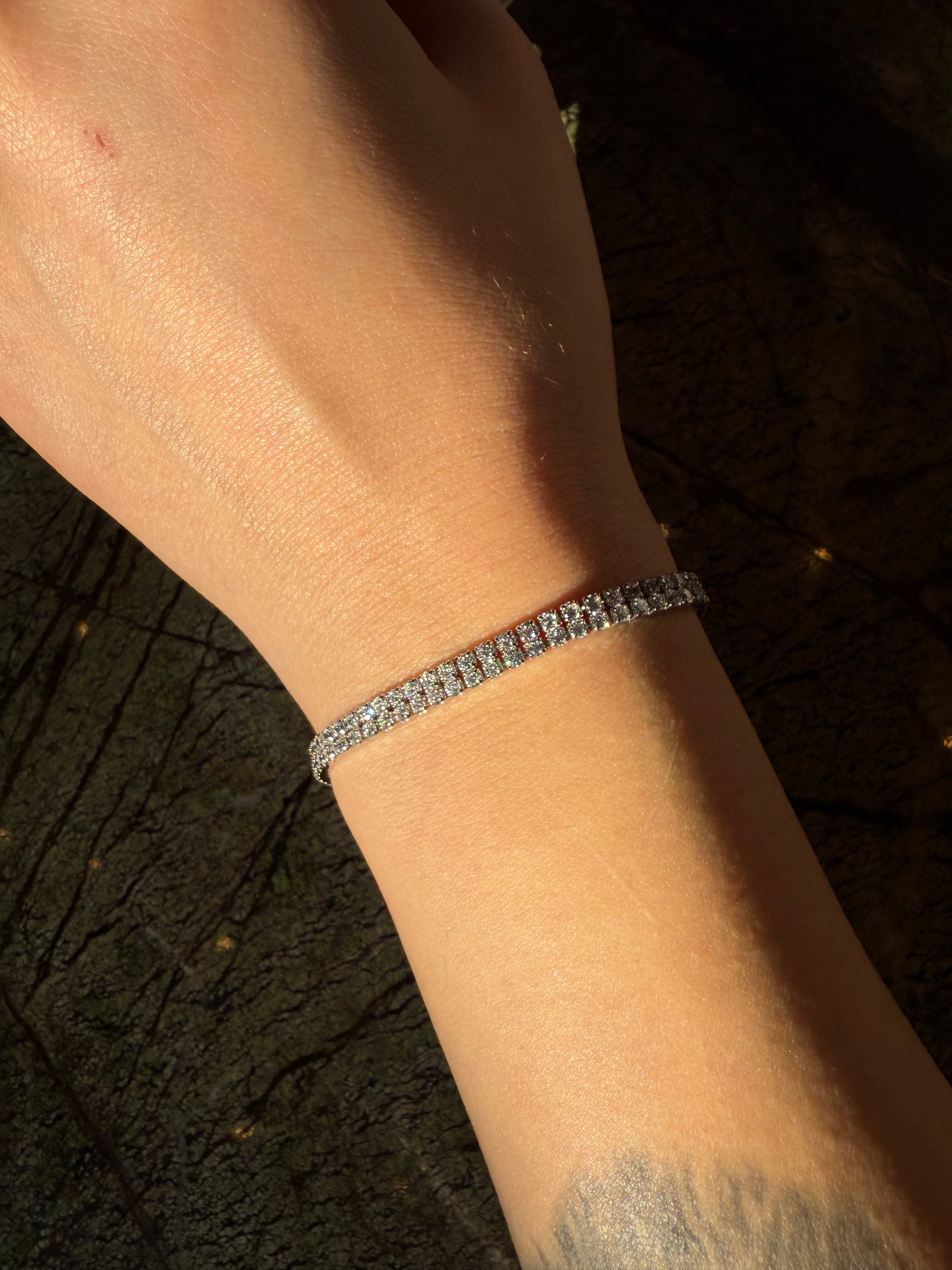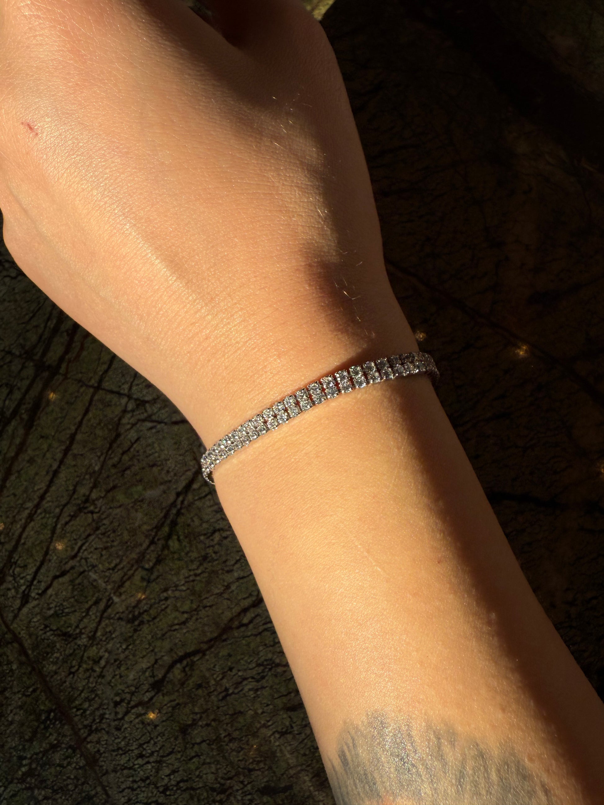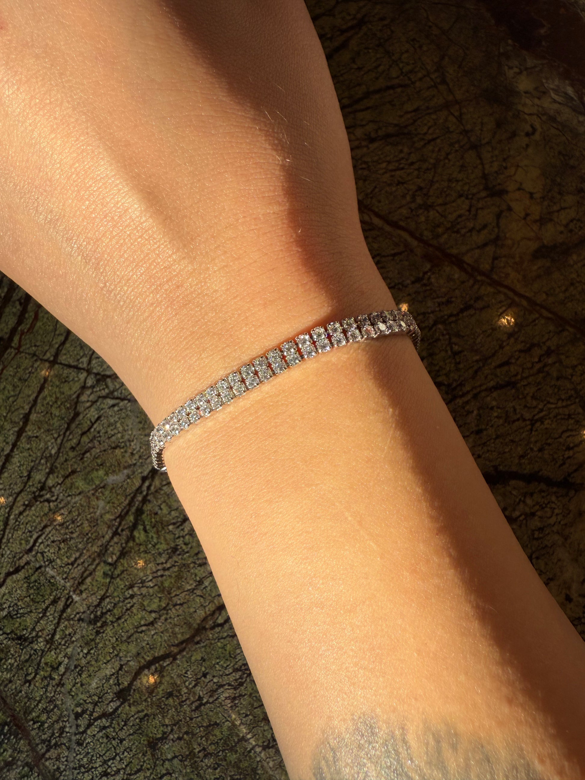 Çift sıra su yolu taş dizilimiyle bileğinde kesintisiz bir parlaklık yaratır. Tek başına zarif durur, diğer Yunea bileklikleriyle birlikte kullanıldığında stilini tamamlar.